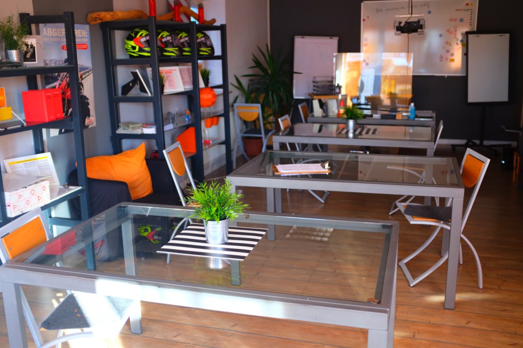 Von Montag bis Freitag sind unsere freundlichen und fachkundigen Mitarbeiterinnen und Mitarbeiter immer für Sie ansprechbar. Unsere modernen hellen Unterrichtsräume sind mit bequemen Stühlen ausgestattet.